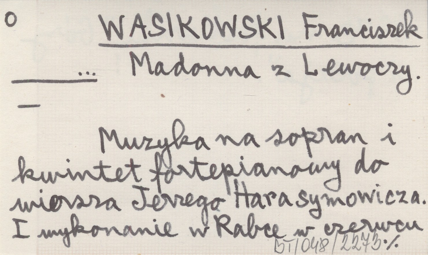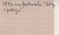 , Muzyka na sopran i kwintet fortepianowy do wiersza Jerzego Harasymowicza. I wykonanie w Rabce w czerwcu 1973 na festiwalu "Góry i poezja".
