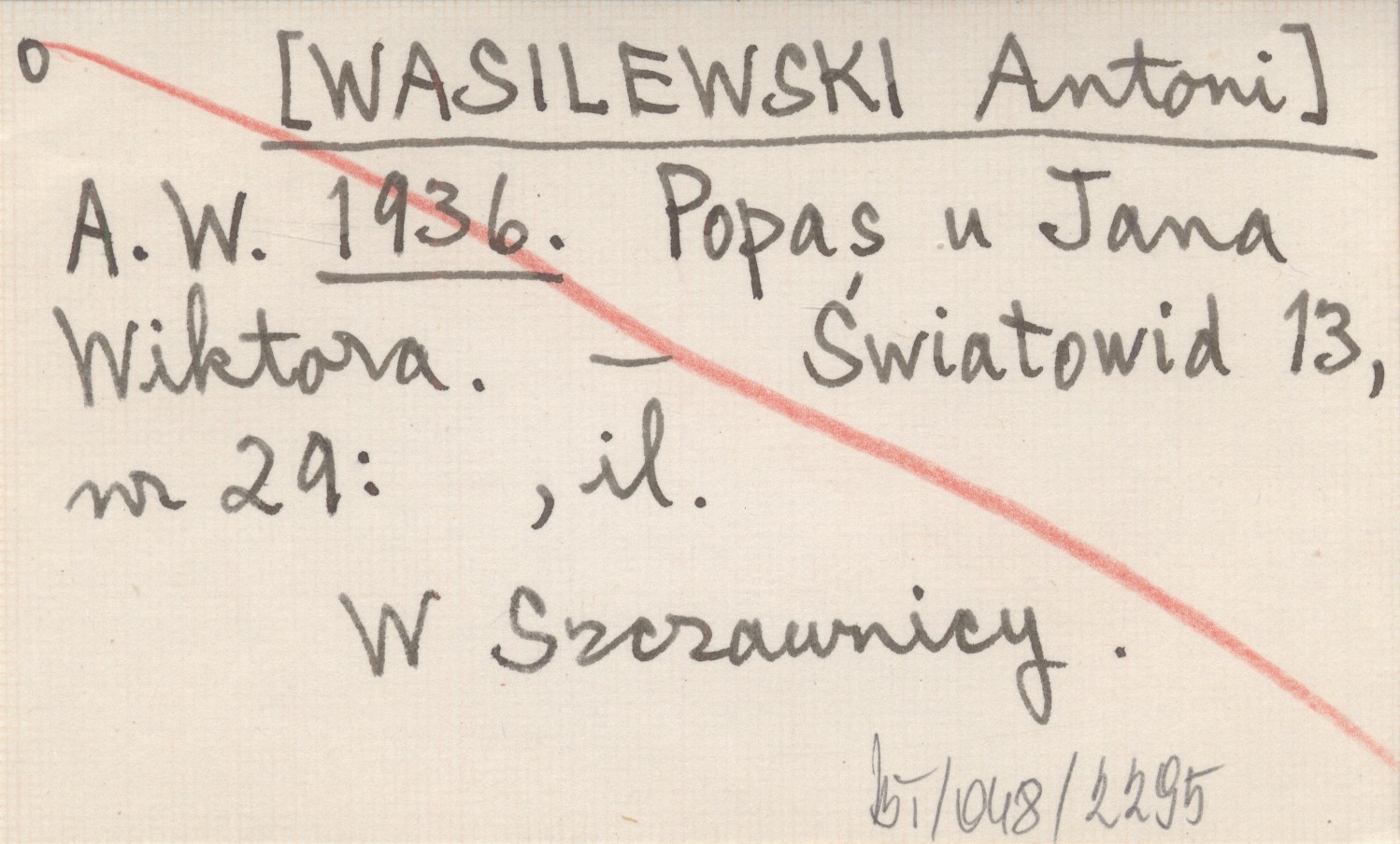 A. W. [WASILEWSKI Antoni] 1936 Popas u Jana Wiktora.