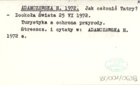 ADAMCZEWSKA H. 1972 Jak osłonić Tatry?
