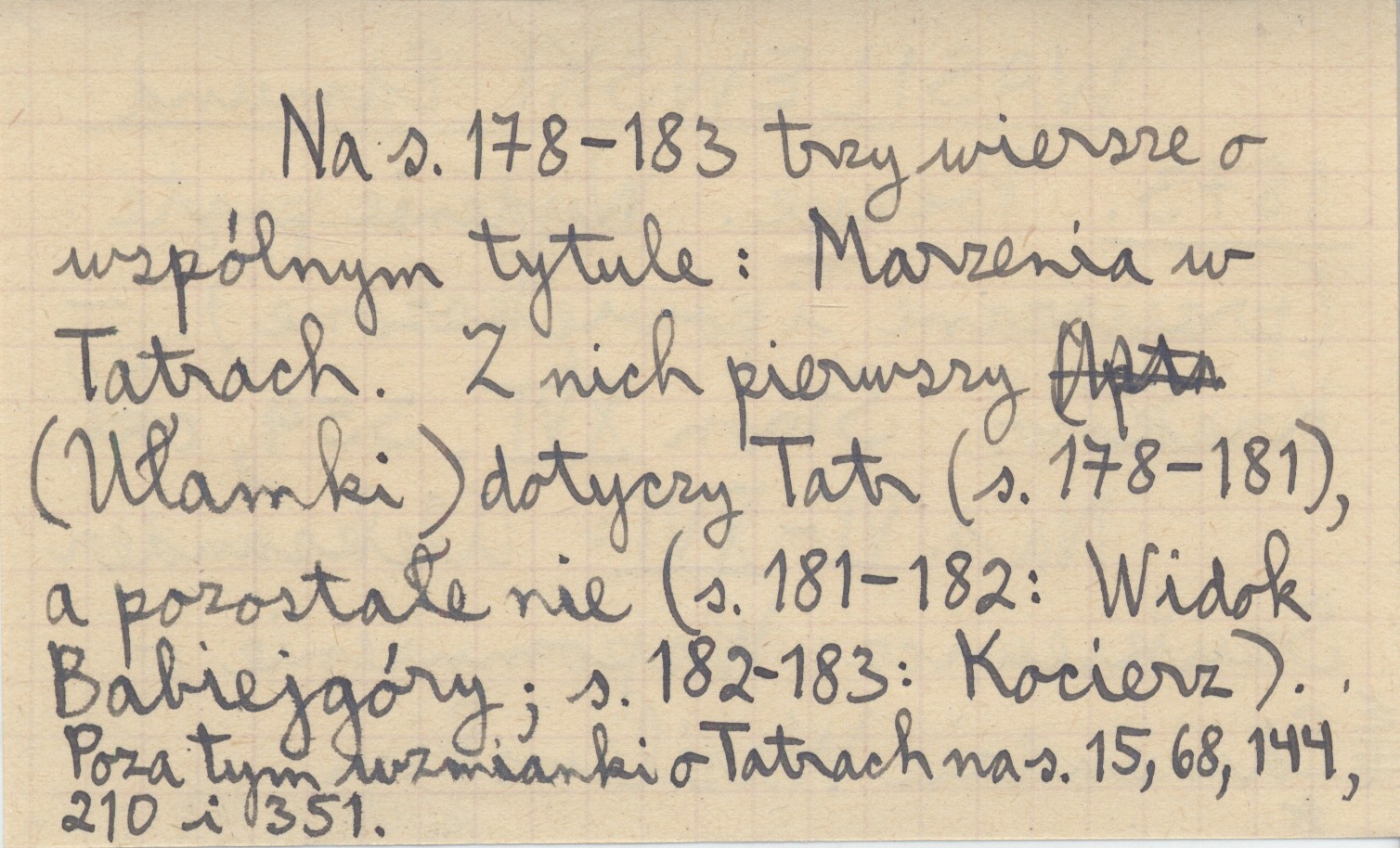 WYD: 5 Kraków , XVI s., 359 s., okł. Na s. VI-XVI: Aleksander Szukiewicz: Wspomnienie o Edmundzie Wasilewskim. Na s. 178-183 trzy wiersze o wspólnym tytule: Marzenia w Tatrach. Z nich pierwszy (Ułamki) dotyczy Tatr (s. 178-181), a pozostałe nie (s. 181-182: Widok Babiejgóry; s. 182-183: Kocierz). Poza tym wzmianki o Tatrach na s. 15, 68, 144, 210 i 351. REC: SOSNOWSKI K. 1925