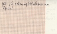 Kultura Polski (Kraków) , 2: 349-351. Przedruki: Dz. Cieszyński r. 1918, nr 131 ; Głos Narodu r. 1918, nr 159 pt. "O ochronę Polaków na Spiżu".