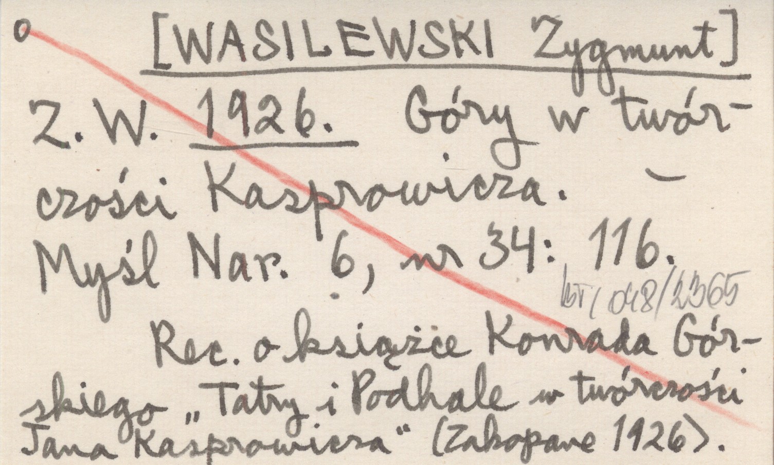 Myśl Narodowa, 6, nr 34: 116. Rec. o książce Konrada Górskiego "Tatry i Podhale w twórczości Jana Kasprowicza" (Zakopane 1926).