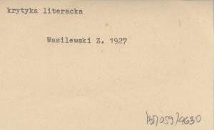 WASILEWSKI Zygmunt 1927 Wspomnienia o Janie Kasprowiczu i Stefanie Żeromskim.