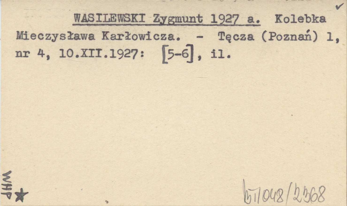 WASILEWSKI Zygmunt 1927 a Kolebka Mieczysława Karłowicza.