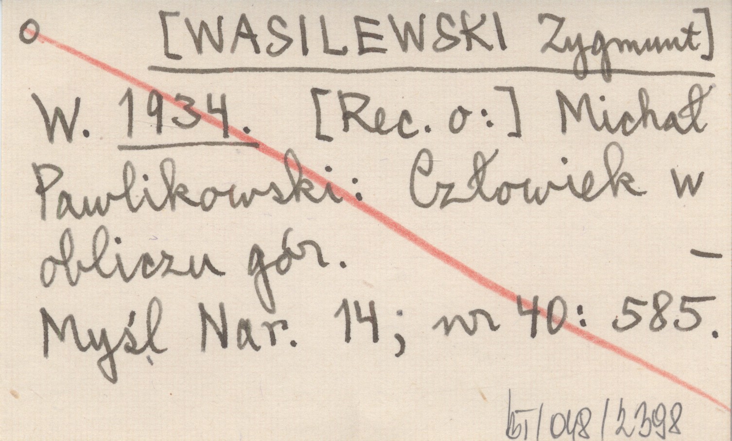 W. [WASILEWSKI Zygmunt] 1934 Michał Pawlikowski: Człowiek w obliczu gór.