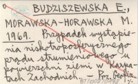 BUDZISZEWSKA E. MORAWSKA-HORAWSKA, M. ; 1969 Przypadek występowania niskotroposferycznego prądu strumieniowego u powierzchni ziemi w Karpatach Zachodnich.