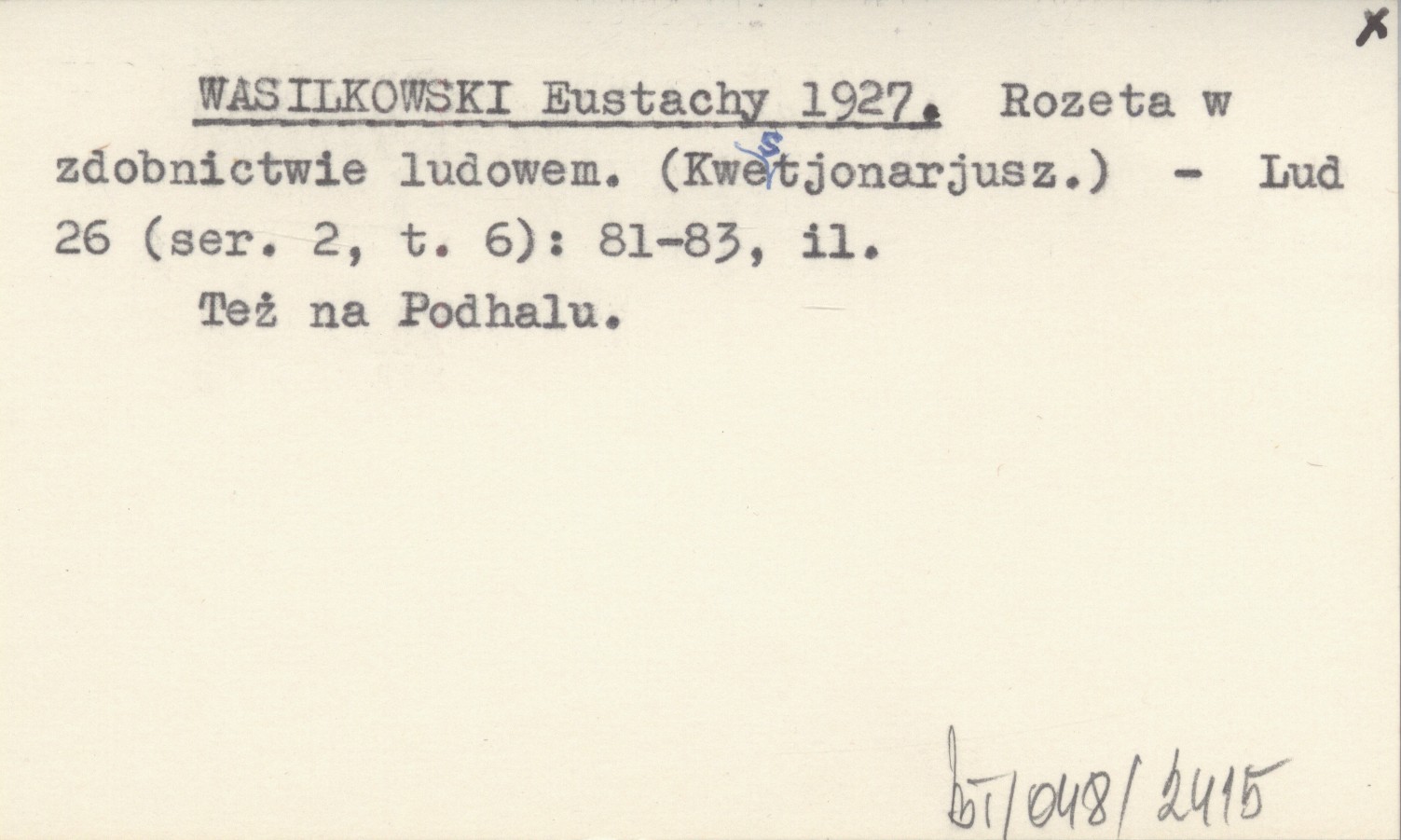 WASILKOWSKI Eustachy 1927 Rozeta w zdobnictwie ludowem. (Kwestjonarjusz).