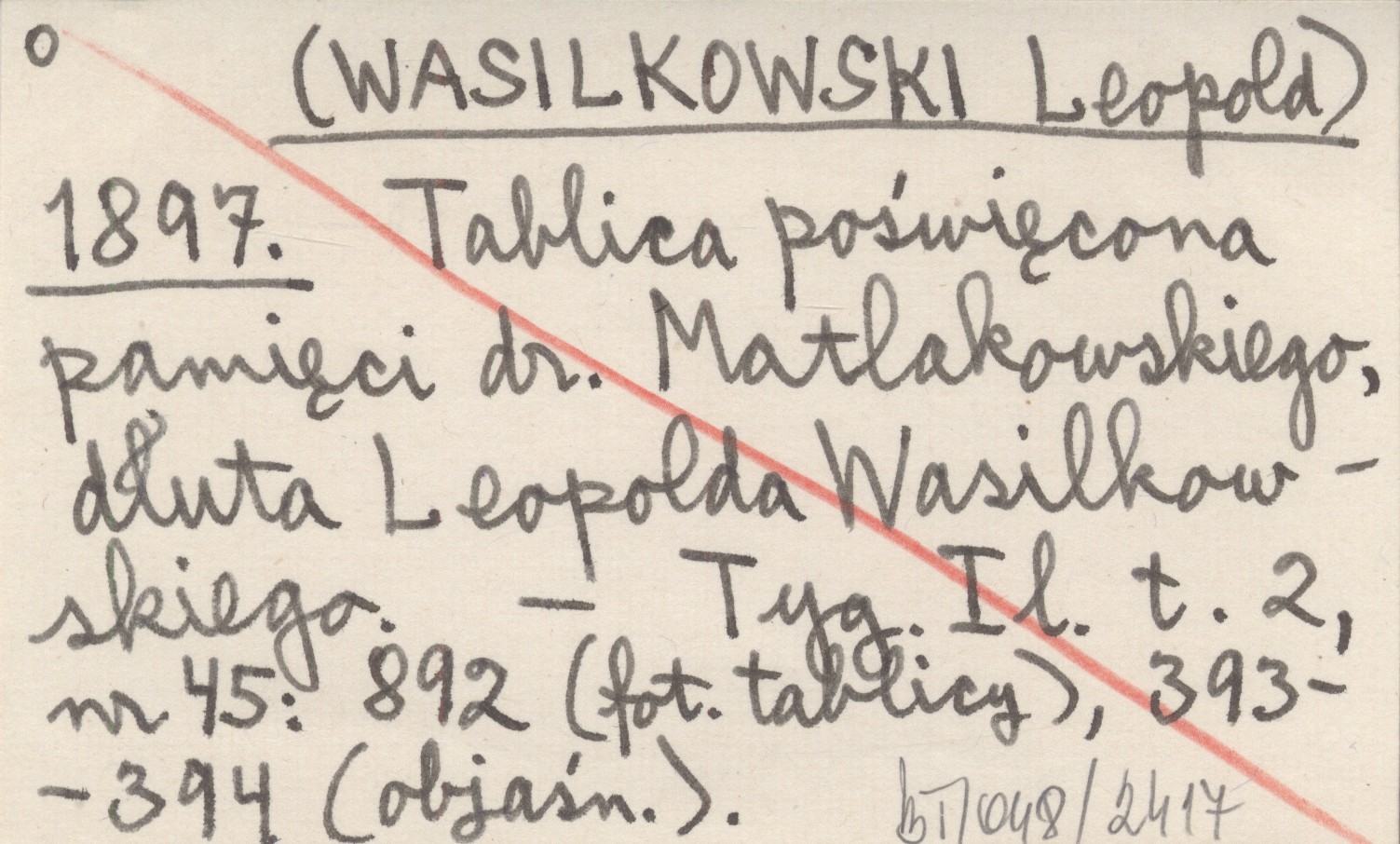 (WASILKOWSKI Leopold) 1897 Tablica poświęcona pamięci dr. Matlakowskiego, dłuta Leopolda Wasilkowskiego.