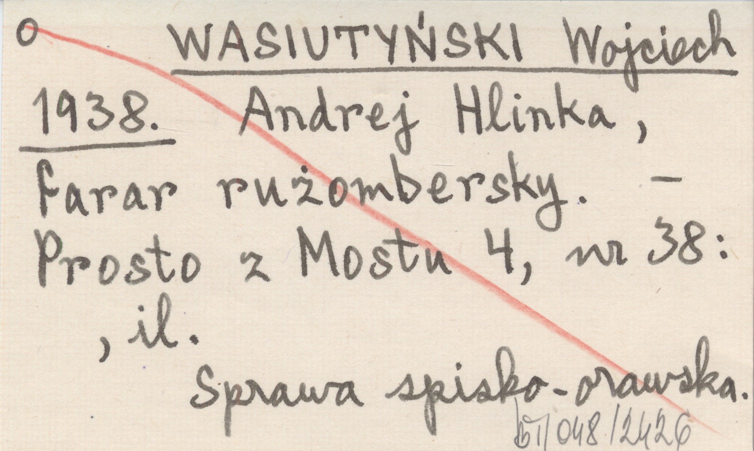 WASIUTYŃSKI Wojciech 1938 Andrej Hlinka, farar rużombersky.