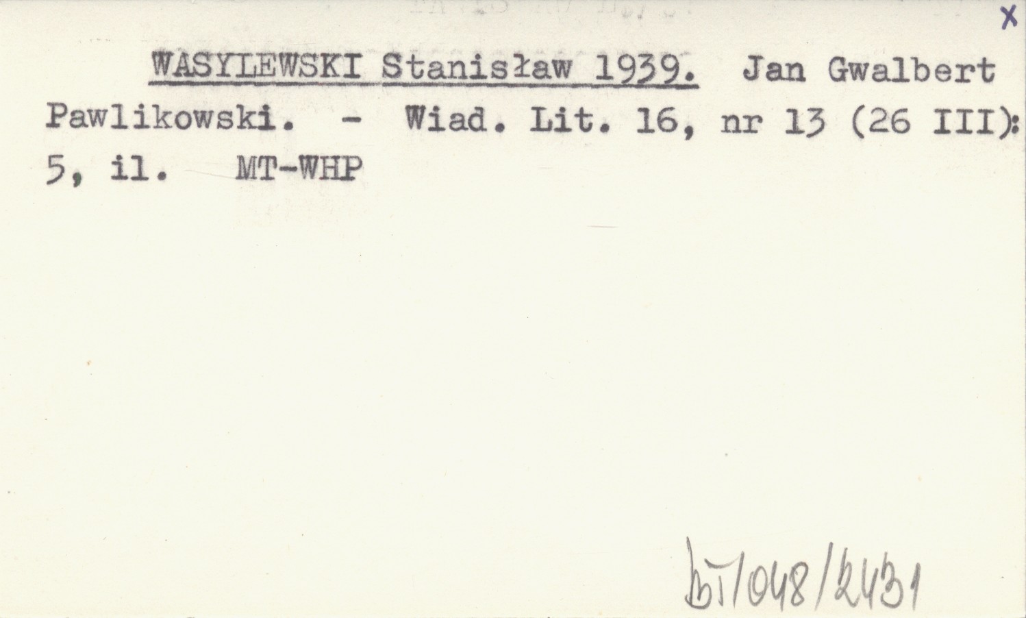 WASYLEWSKI Stanisław 1939 Jan Gwalbert Pawlikowski.