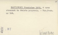 WASYLEWSKI Stanisław 1932 O nowy stosunek do świata przyrody.