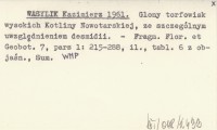 WASYLIK Kazimierz 1961 Glony torfowisk wysokich Kotliny Nowotarskiej, ze szczególnym uwzględnieniem desmidii.