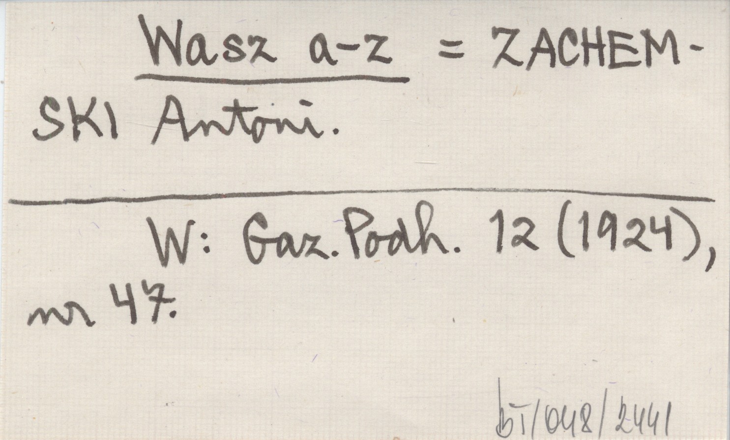 Wasz a-z ZACHEMSKI Antoni Gazeta Podhalańska 12 (1924), nr 47.