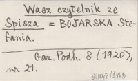Wasz czytelnik ze Spisza BOJARSKA Stefania Gazeta Podhalańska 8 (1920), nr 21.