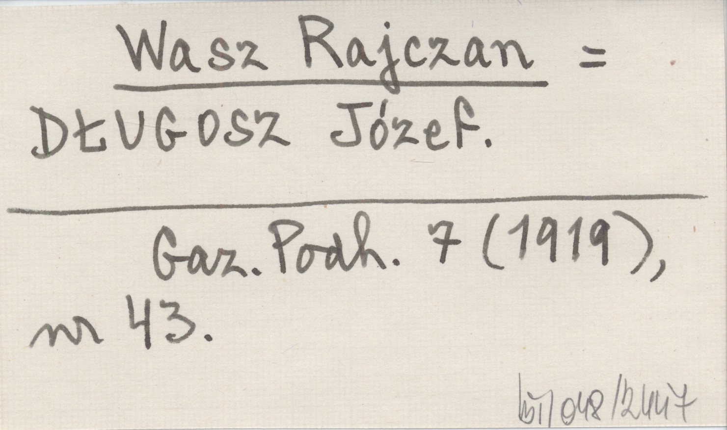 Wasz Rajczan DŁUGOSZ Józef Gazeta Podhalańska 7 (1919), nr 43.