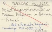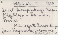 WASZAK S. 1938... Dział korespondencji Muzeum Miejskiego w Poznaniu.