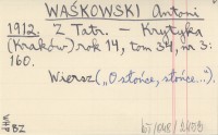 WAŚKOWSKI Antoni 1912 Z Tatr.