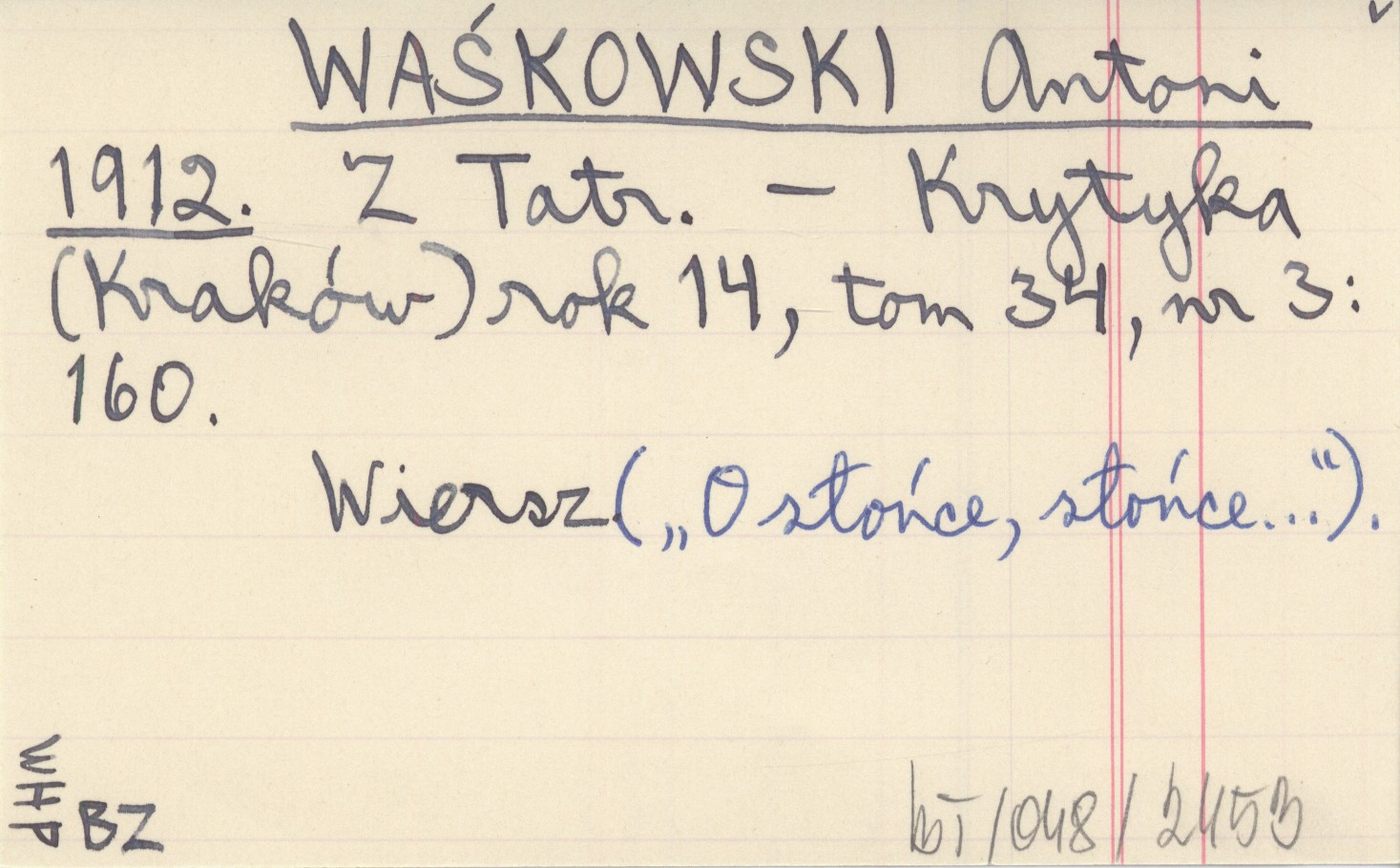 Krytyka (Kraków) , R. 14, t. 34, nr 3: 160. Wiersz ("O słońce, słońce...").