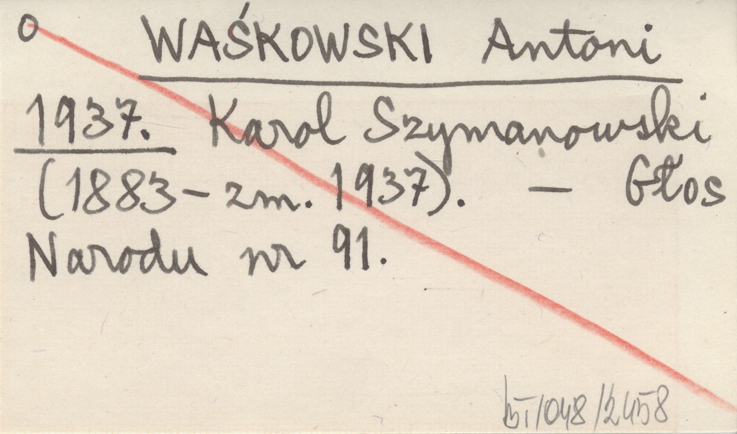WAŚKOWSKI Antoni 1937 Karol Szymanowski (1883-zm. 1937).