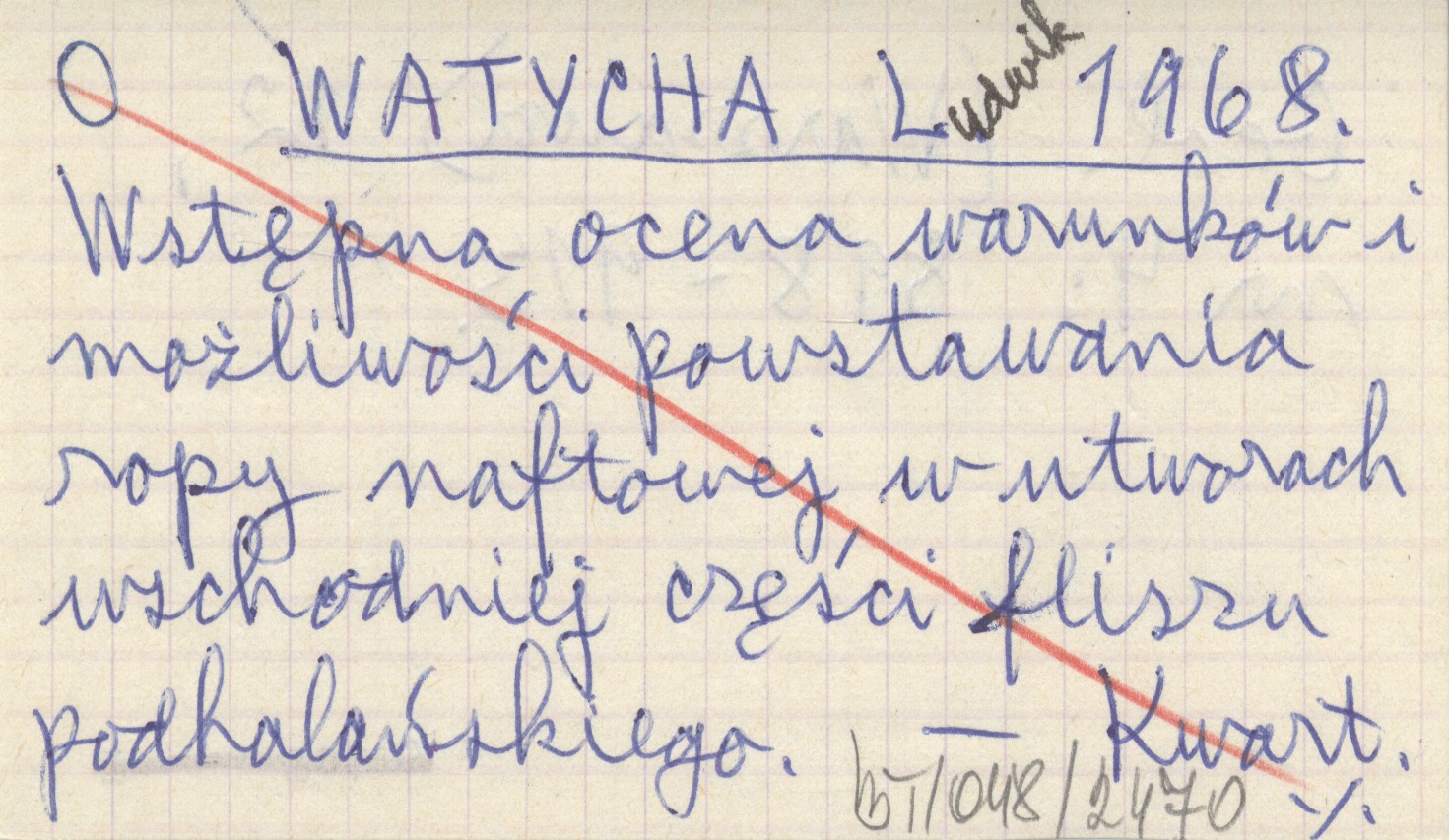 WATYCHA Ludwik 1968 Wstępna ocena warunków i możliwości powstawania ropy naftowej w utworach wschodniej części fliszu podhalańskiego.