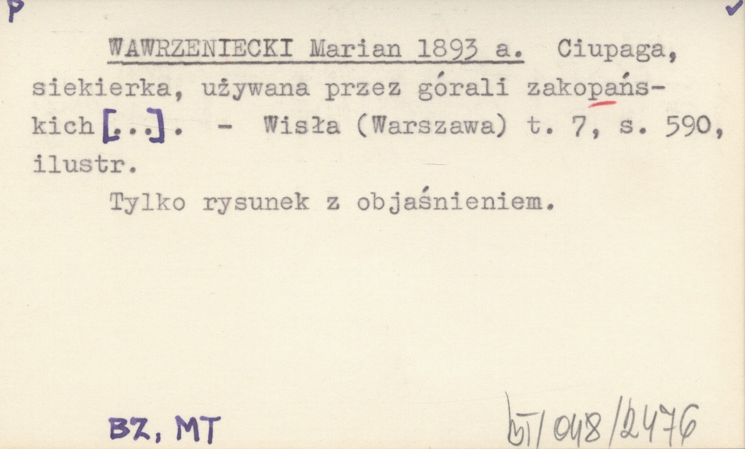 WAWRZENIECKI Marian 1893 a Ciupaga, siekierka, używana przez górali zakopańskich [...].