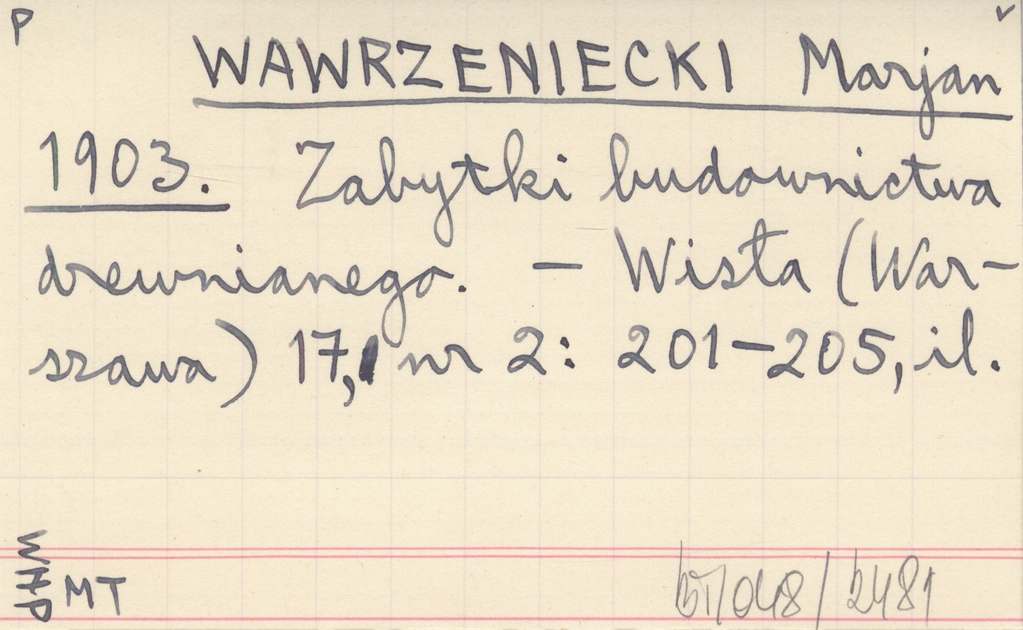 WAWRZENIECKI Marjan 1903 Zabytki budownictwa drewnianego.
