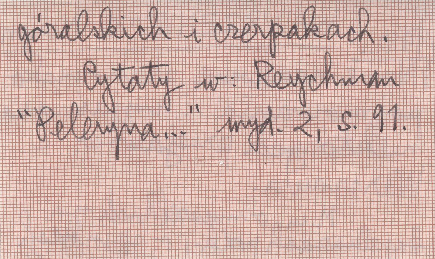 Warszawa , M.in. o muszelkach na kapeluszach podh., o spinkach góralskich i czerpakach. Cytaty w: Reychman "Peleryna..." wyd. 2, s. 91.