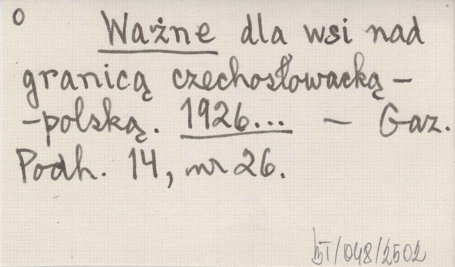 Ważne dla wsi nad granicą czechosłowacką-polską. 1926...