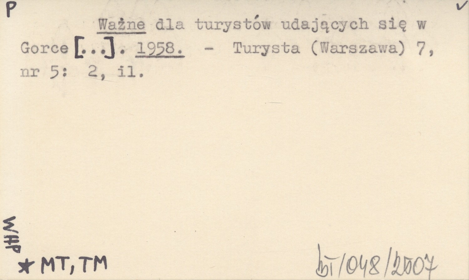 Ważne dla turystów udających się w Gorce [...]. 1958