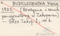 BUDZISZEWSKA Maria 1923 [Drożyzna i cennik pensjonatowy w Zakopanem.]