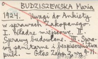 BUDZISZEWSKA Maria 1924 Uwagi do ankiety w sprawach Zakopanego. I. Władze miejscowe. II. Sprawy budowlane. III. Sprawy sanitarne i bezpieczeństwa publicznego.