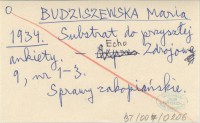 BUDZISZEWSKA Maria 1934 Substrat do przyszłej ankiety.