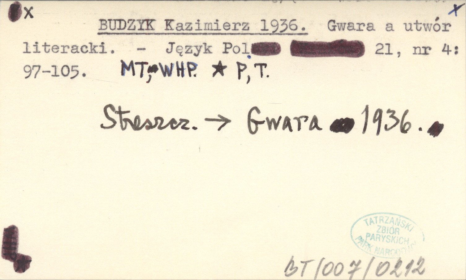 Język Polski, 21, nr 4: 97-105. Streszczenie: Gwara 1936