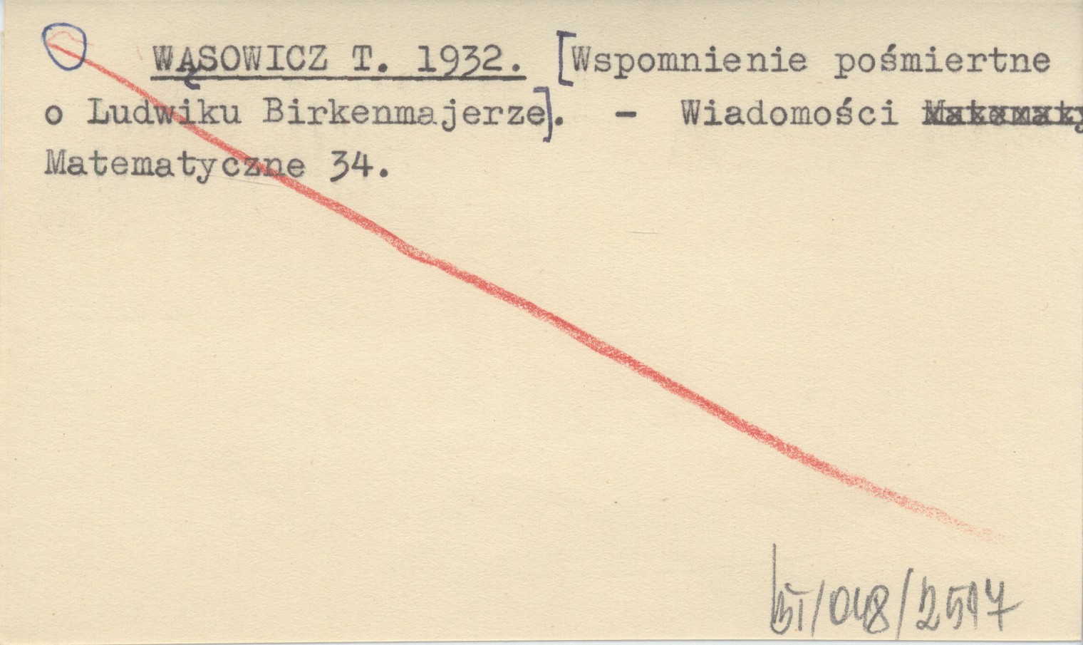 WĄSOWICZ T. 1932 [Wspomnienie pośmiertne o Ludwiku Birkenmajerze].