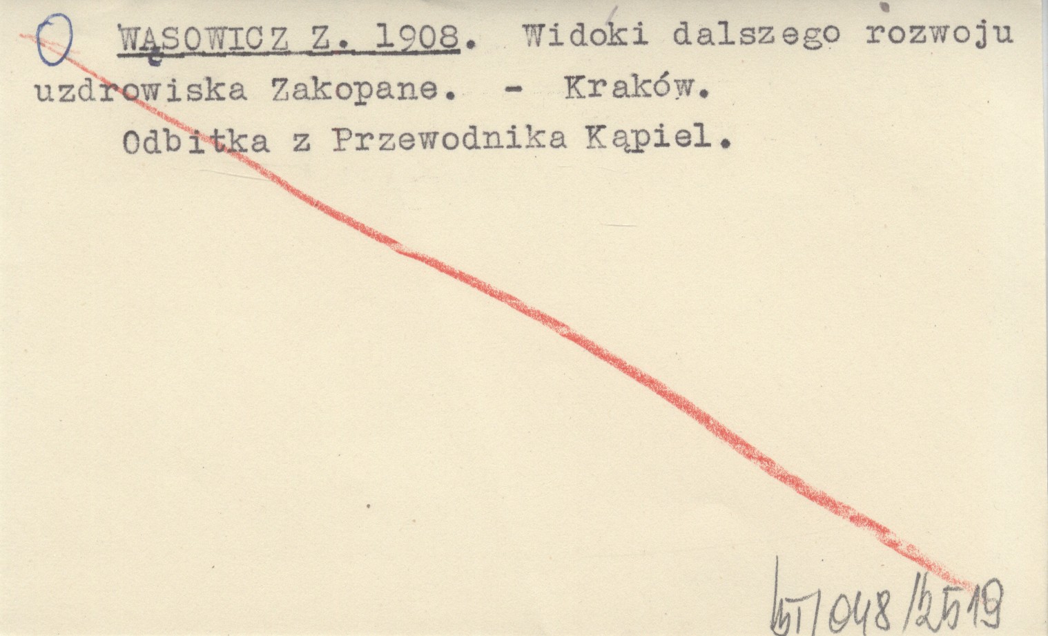 WĄSOWICZ Z. 1908 Widoki dalszego rozwoju uzdrowiska Zakopane.