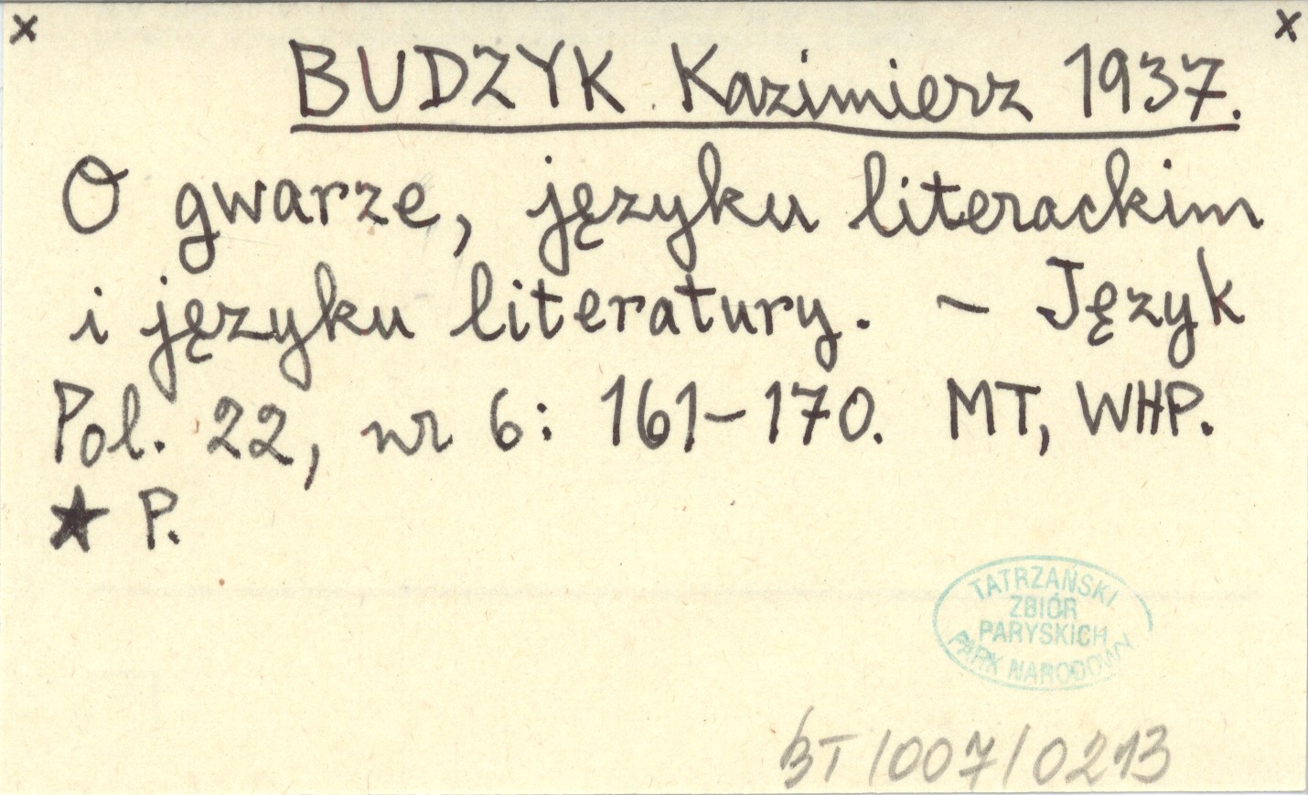 BUDZYK Kazimierz 1937 O gwarze, języku literackim i języku literatury.