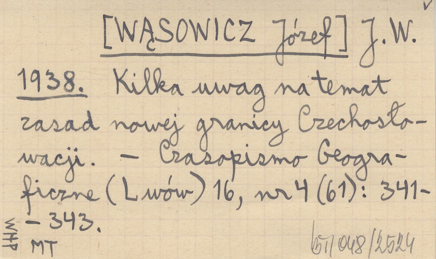 J. W. [WĄSOWICZ Józef] 1938 Kilka uwag na temat zasad nowej granicy Czechosłowacji.