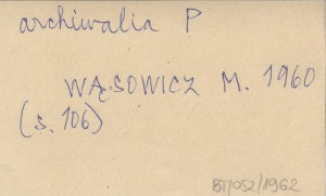 WĄSOWICZ Michał 1960 Materiały do dziejów Polski w Centralnych Historycznych Archiwach Państwowych we Lwowie i Kijowie.