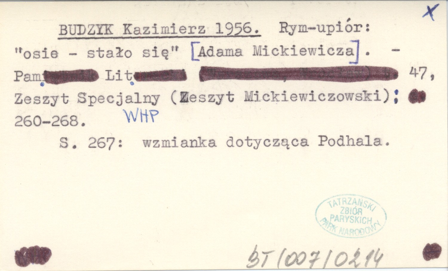 Pamiętnik Literacki, 47, Z. Specjalny (Zeszyt Mickiewiczowski): 260-268. S. 267: wzmianka dotycząca Podhala.
