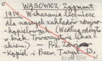 WĄSOWICZ Zygmunt 1914 Wskazania lecznicze dla naszych zakładów zdrojowo-kąpielowych. (Według odczytu w krak. Towarzystwie lekarskiem).