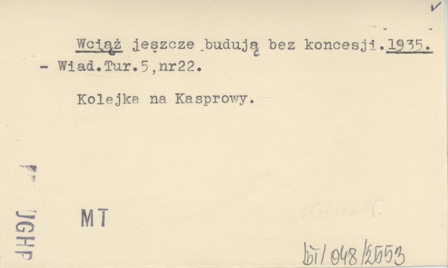 Wiadomości Turystyczne, 5, nr 22. Kolejka na Kasprowy.