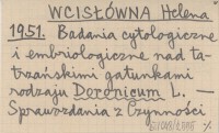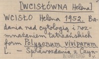 WCISŁO Helena [WCISŁÓWNA Helena] 1952 Badania nad cytologią i rozmnażaniem tatrzańskich form Polygonum viviparum L.