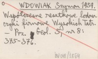 WDOWIAK Szymon 1959 Współczesne resztkowe lodowczyki firnowe Wysokich Tatr.