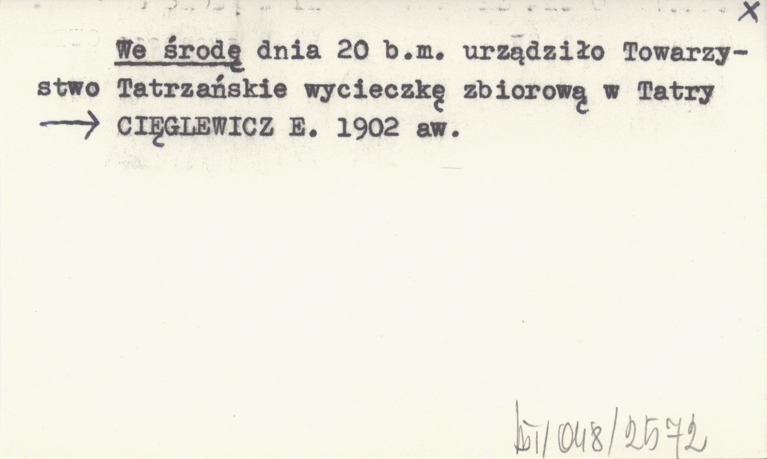 We środę dnia 20 b.m. urządziło Towarzystwo Tatrzańskie wycieczkę zbiorową w Tatry.