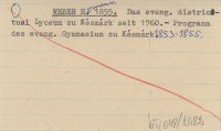 WEBER Hermann 1854 Das evang. Gymnasium zu Kesmark in seiner geschichtlichen Entwicklung.