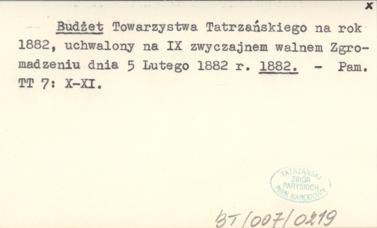 Budżet Towarzystwa Tatrzańskiego na rok 1882, uchwalony na IX zwyczajnem walnem Zgromadzeniu dnia 5 lutego 1882 r. 1882