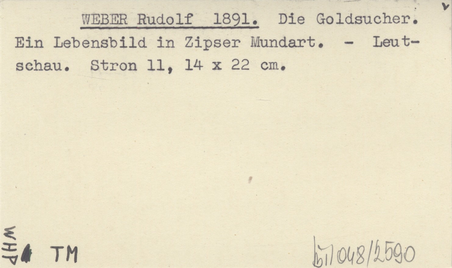 WEBER Rudolf 1891 Die Goldsucher. Ein Lebensbild in Zipser Mundart.