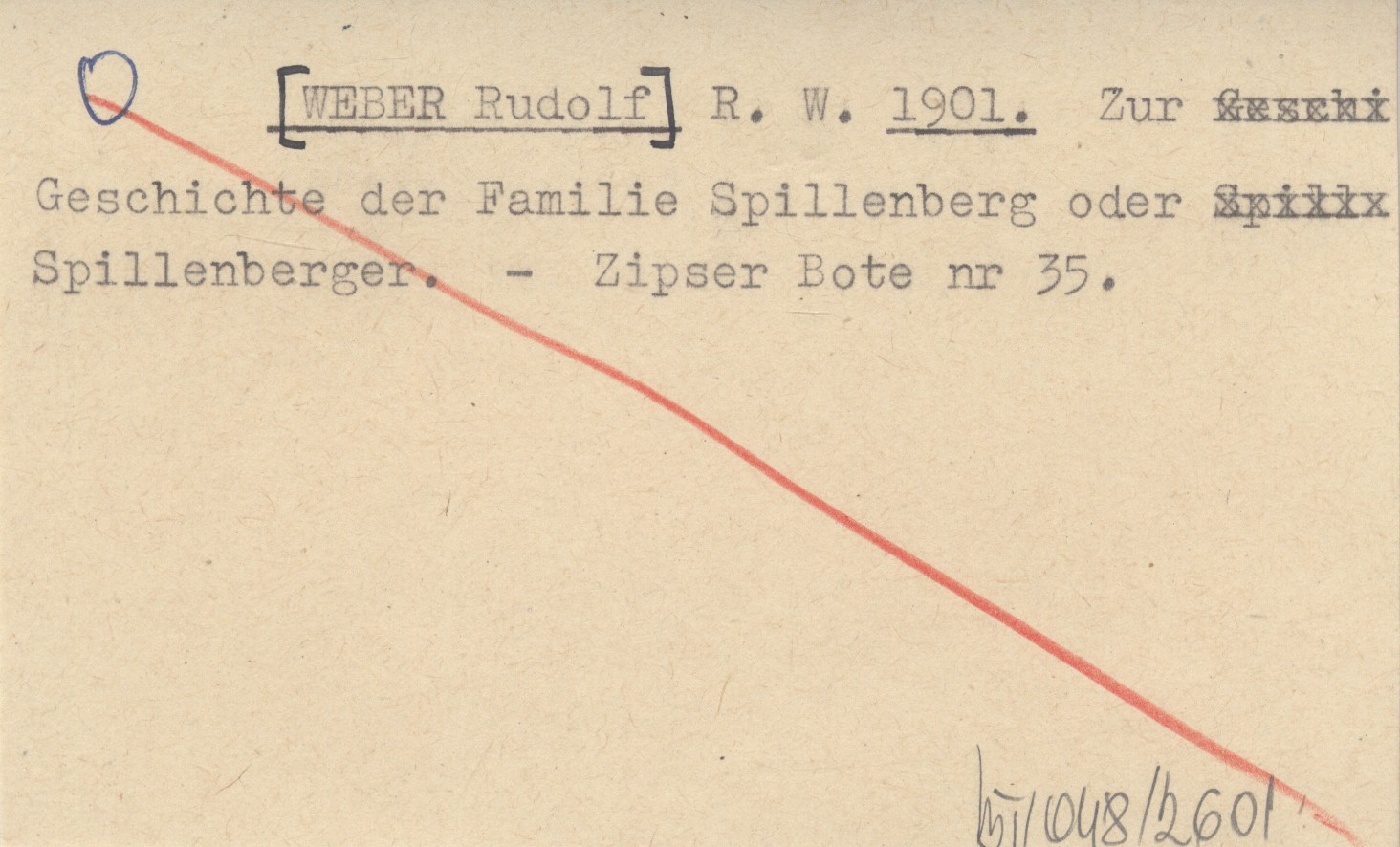 R. W. [WEBER Rudolf] 1901 Zur Geschichte der Familie Spillenberg oder Spillenberger.