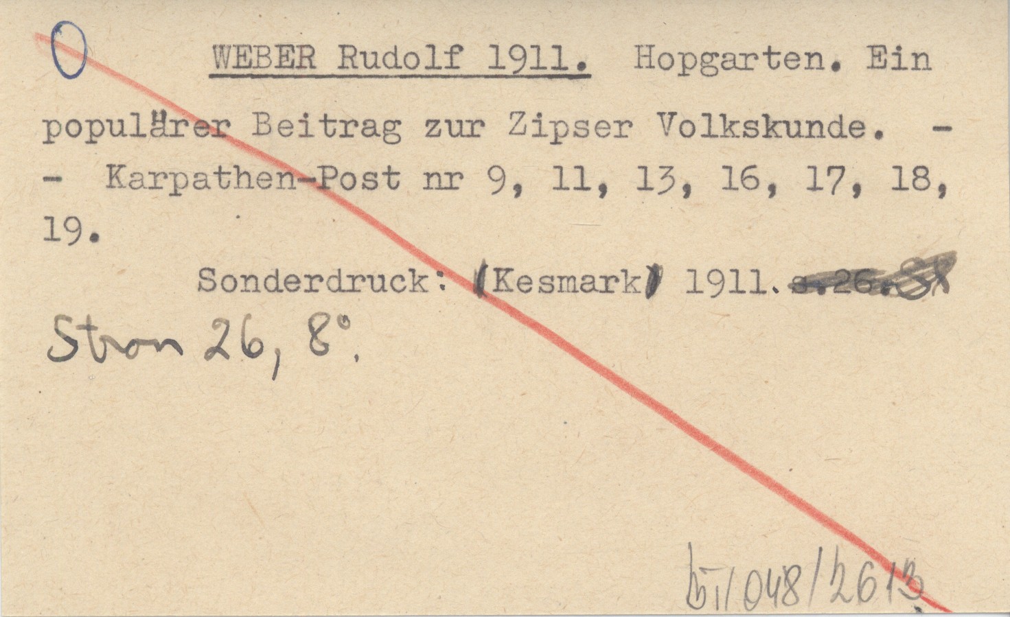 Sonderdruck: Kesmark 1911, 26 s., 8°.