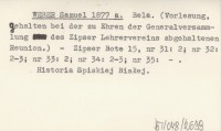 WEBER Samuel 1877 a Bela. (Vorlesung, gehalten bei der zu Ehren der Generalversammlung des Zipser Lehrervereins abgehaltenen Reunion).